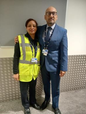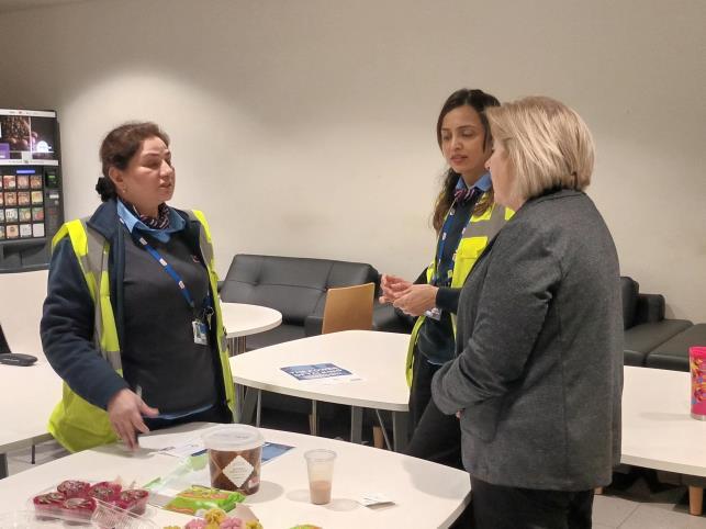 June Tyson, Health and Safety Business Support Manager, and Olu Olojo-Kosoko, Health & Safety Support Manager, spent the day (Thursday 1 February) spreading the ‘Time to Talk’ message at London Heathrow Airport. They reminded colleagues who their local ICTS Mental Health First Aiders are (Kirsty Virdee and Pratingna Vital) and highlighted the support our ICTS Employee Assistance Programme can offer.