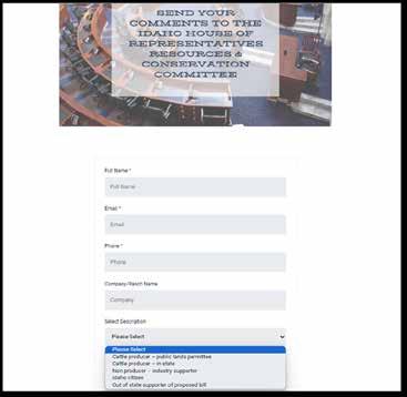 Message from the President 6 Message from the EVP 8 Message from Natural Resources Policy Director 12 Message from the Cow-Calf Council Chair 14 Legislative Update 26 Message from the National Cattlemen’s Beef Association 46 Guest Column: Recognition for Idaho’s Ranching Community 52
