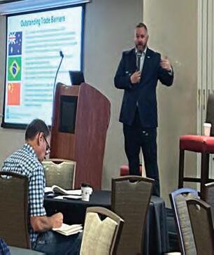 The following day was our official Region V Meeting, which now includes Oregon, Washington, Montana, Wyo ming—and Idaho. We began the day with Lance Zimmer man of Rabo AgriFinance, who presented positive trends in beef consumption. According to Lance, we’re currently ex periencing the highest demand for beef since 1987. He also predicted that shared processor ownership throughout pro duction will significantly impact the industry going forward.