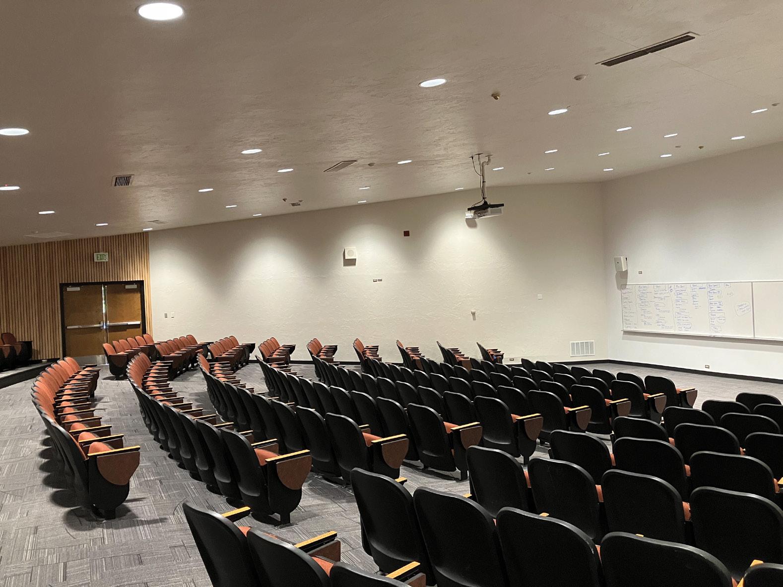 In the past year, the primary lecture hall in the Lecture Center was renovated. Antiquated desks were removed, carpet replaced, and modern technology installed. This modernization and renovation project was completed using Lottery dividends through the Permanent Building Fund. This lecture hall, at one time or another, will see approximately 1/3 of all ISU students attend a class here, as well as hosting team meetings and film review sessions for the ISU Bengals football team.