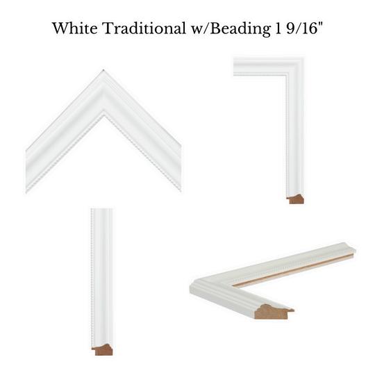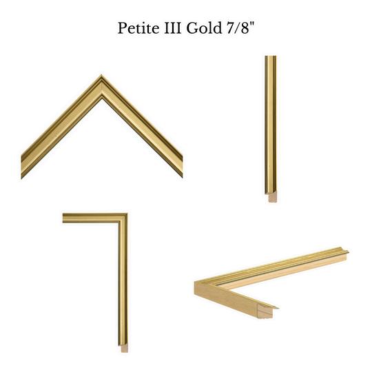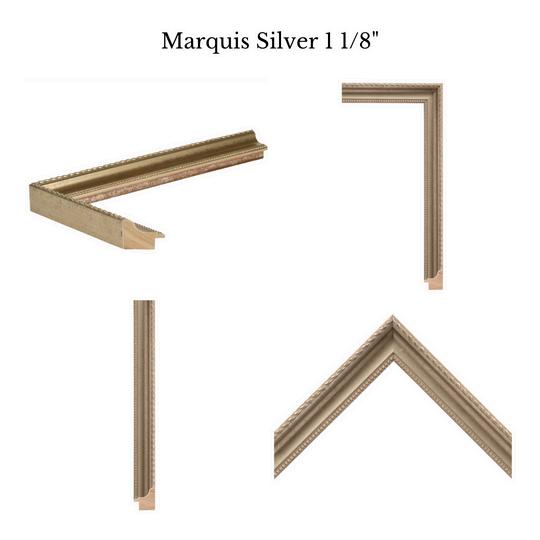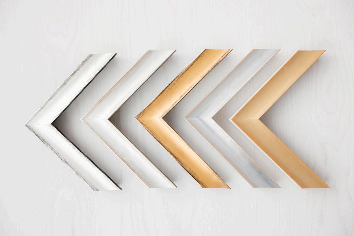 On the following pages you will find our signature moulding options. Please note that larger size mouldings that are over 2" wide are recommended for artwork that is 20"x30" or larger while smaller mouldings that are less than 1" wide are recommended for artwork that is 11"x14" or smaller.