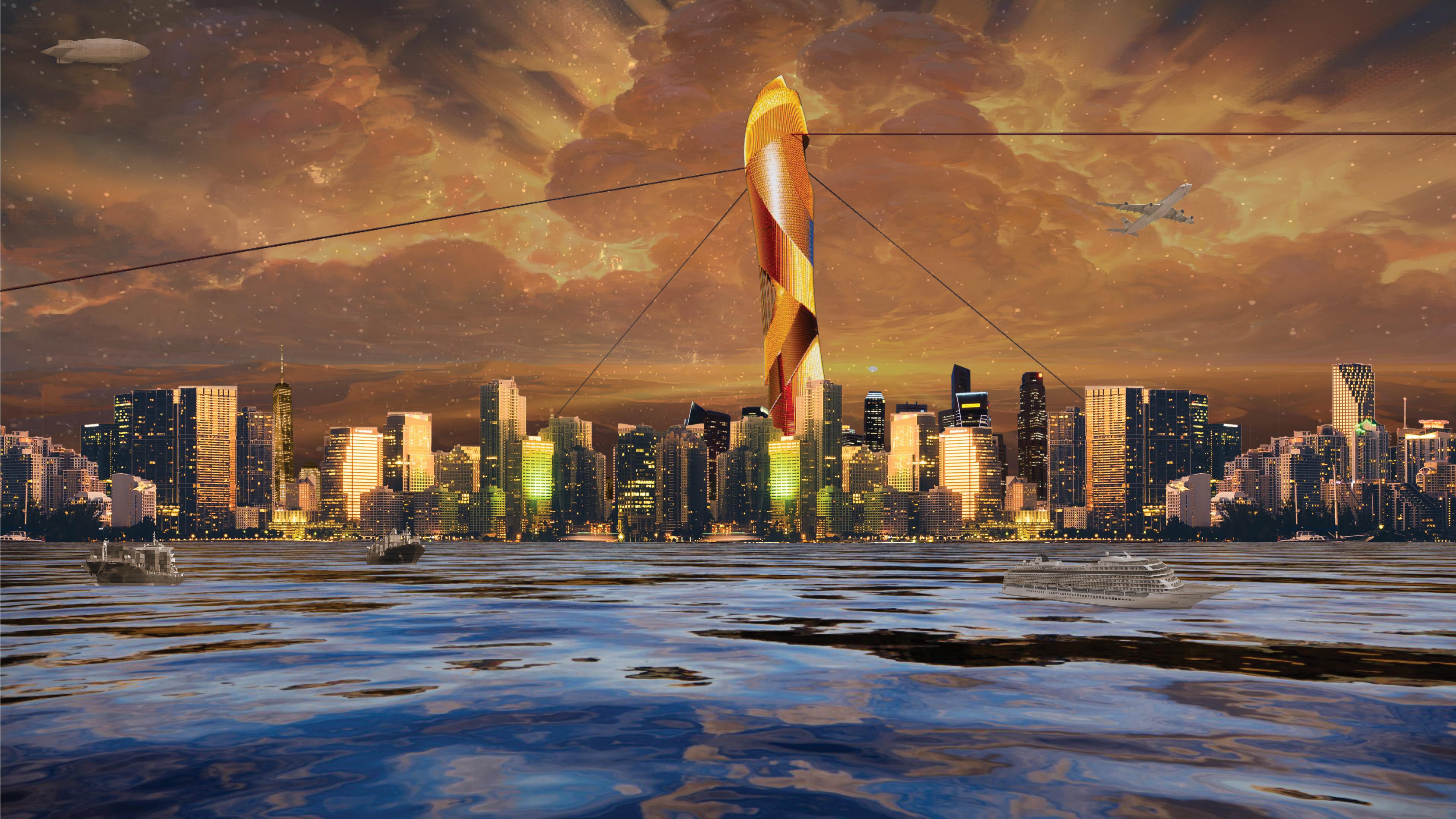 The composition drawing above shows the varying spaces within the skyscraper with indicators of where they exist in the archtiecture. The main backdrop is an anticipation of how Eko Atlantic’s skyline will evolve as it desnifies in the future.