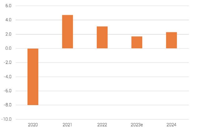 En México, el Producto Interno Bruto (PIB) se desacelerará de 3.1% en 2022 a 1.7% en 2023 y reactivarse en 2024, hasta alcanzar un avance de 2.3%.