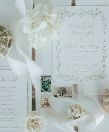 It’s wedding season! This issue features many beautiful ceremonies and receptions, from this magical backyard celebration to a gorgeous Rosemary Beach soiree. They’re sure to inspire you alongside the many homes and destinations found within these pages. Congratulations again to all the newlyweds, including our cover bride, Meghan Asbury, whose story is especially dear to our hearts as she is the niece of our founder and editor-in-chief, Lisa Marie Burwell. See more from this ceremony at Eden Gardens State Park and the exciting backyard reception on page 28.