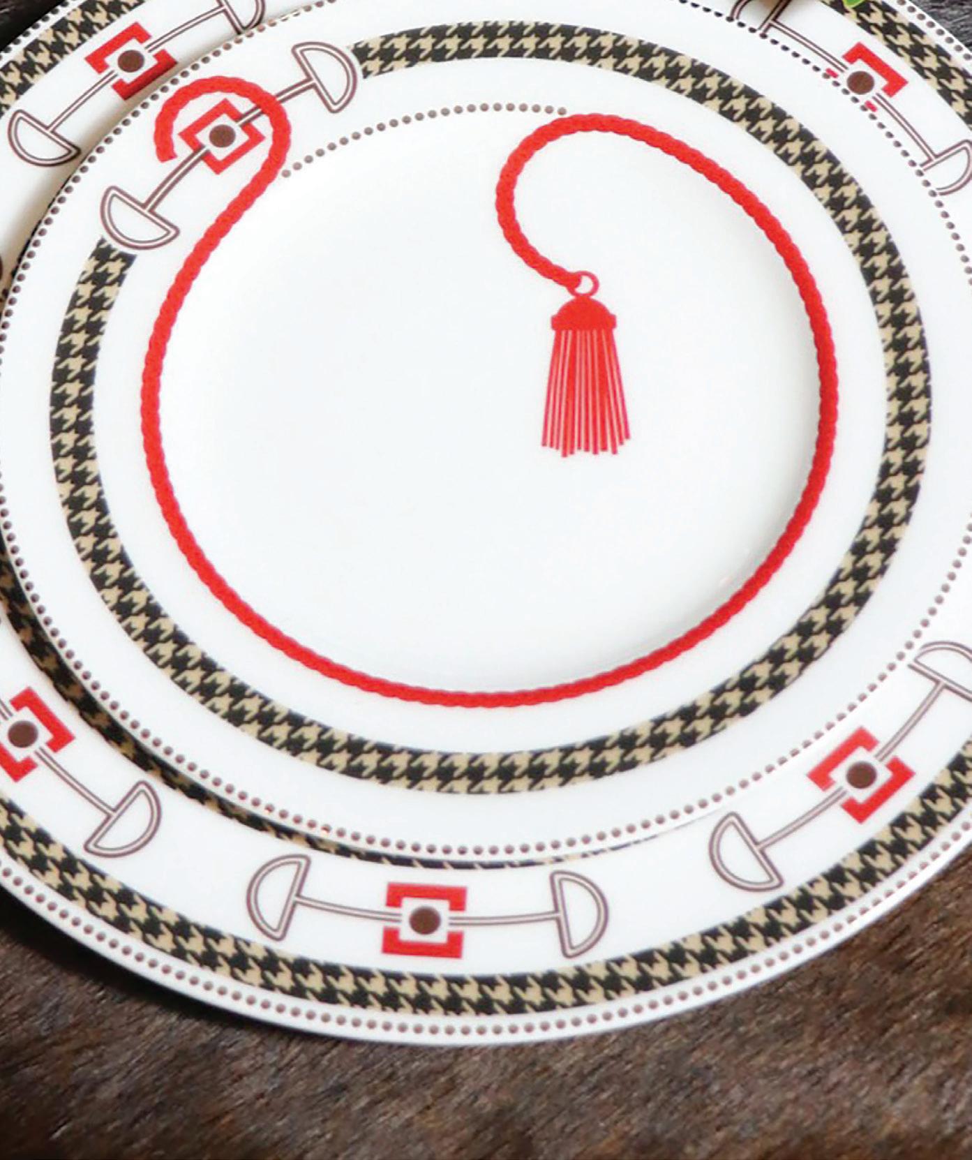 Her E Collection, boasting various tableware items and accessories, combines Natalie’s love of all things equestrian with influences from everything from English riding to Western ranch life and the Kentucky Derby.