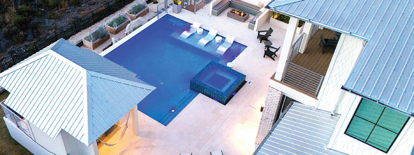 • Exceptional Design: Spacious living, dining, and kitchen area opening onto elevated pool deck with pool bar..