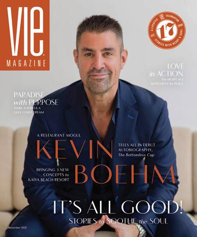 Behind every unforgettable dining experience are the visionary minds who create the atmosphere, food, and feeling of excitement or relaxation. Enter Kevin Boehm! The co-founder of Boka Restaurant Group, this award-winning restaurateur defines what it means to dine, connect, and create community around a table. This photo was captured at Kaiya Beach Resort, where Boehm plans to open three new dining concepts, starting with an elevated breakfast café called This New Day. And, as if taking an entire industry by storm wasn’t enough, he has now harnessed his storytelling talent to pen his new memoir, TheBottomlessCup, out November 4, 2025. Read more about his incredible journey on page 28!