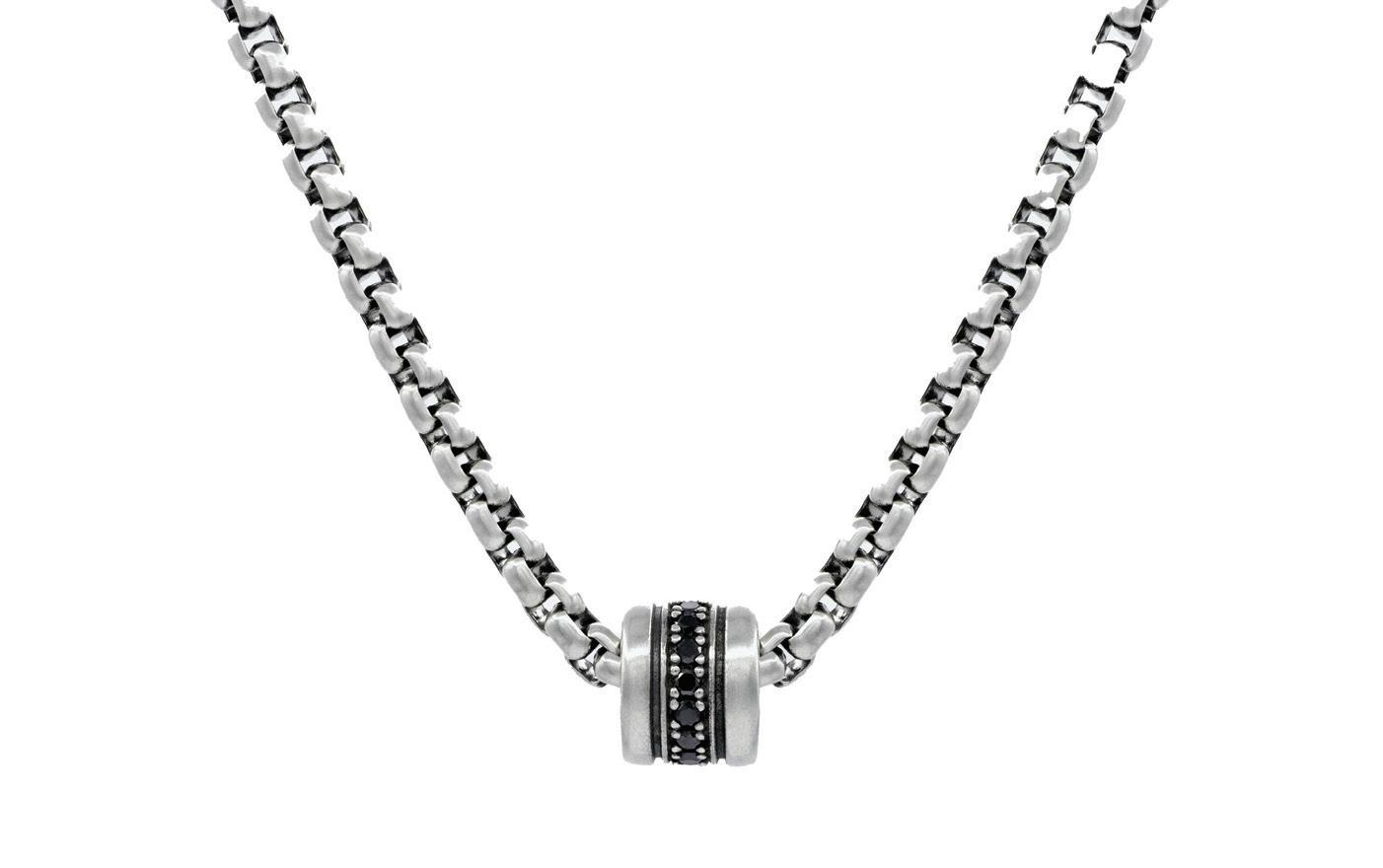 David Heston Sterling Silver & Black Diamond Rondel on Sterling Silver Round Box Chain, 20" Pricing in Store