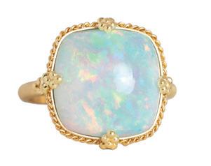 Cushion-Shaped Ethiopian Opal; One-of-a-Kind Gemstone with a Handmade 18K Yellow Gold Frame Accented with Braided Gold and Granulated Prongs, 6.03ctw Pricing in Store