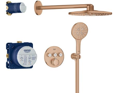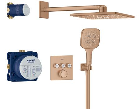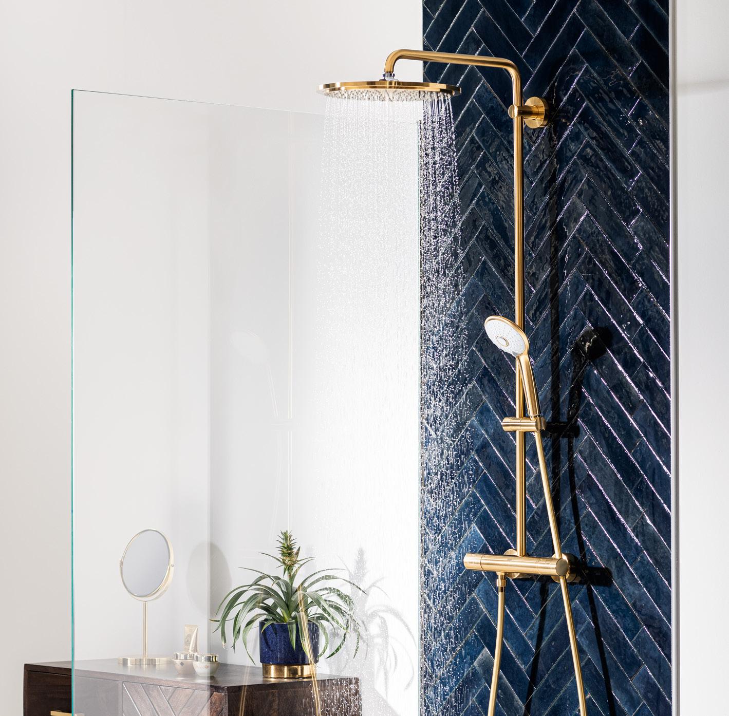 GROHE Brushed Warm Sunset will stimulate your senses and add a touch of luxury to your interior. With a full range of taps, showers and accessories the colour will add warmth to your bathroom. GROHE’s Brushed Warm Sunset finish works best when used in high contrast with luxurious materials like dark stone or white marble. This serves to accentuate the taps and capture your attention in the bathroom. Only use simple patterns and keep the contrast in the rest of the room to a minimum as you want