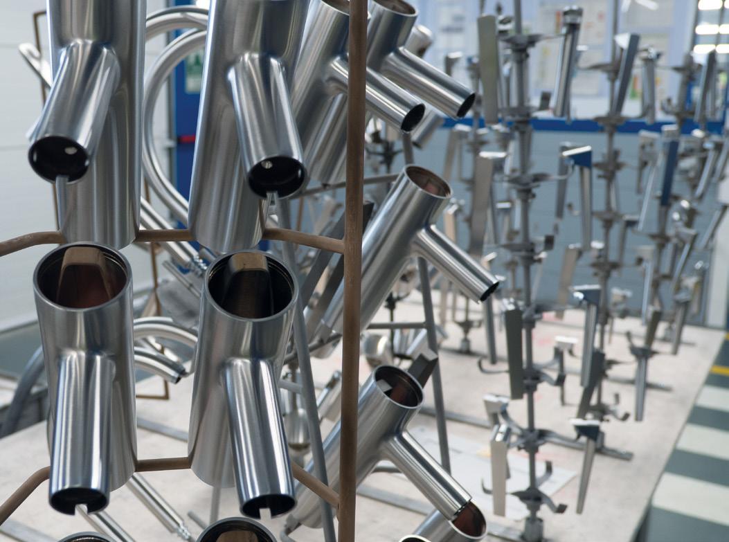 three hours. Metal parts are heated up and require at least one hour. The dried and heated components are transported into the PVD machine now. The second step is the PVD coating and this process takes place in a high-vacuum environment and consists of three steps: first the substrate cleaning, then the primer coating and finally the colour coating. To realise different colours, reactive gasses like nitrogen and acetylene are added to the target material zirconium. The time required for a coating depends on the process and takes between one and two hours. In the last step, every product is carefully controlled for defects before they are packaged and delivered.
