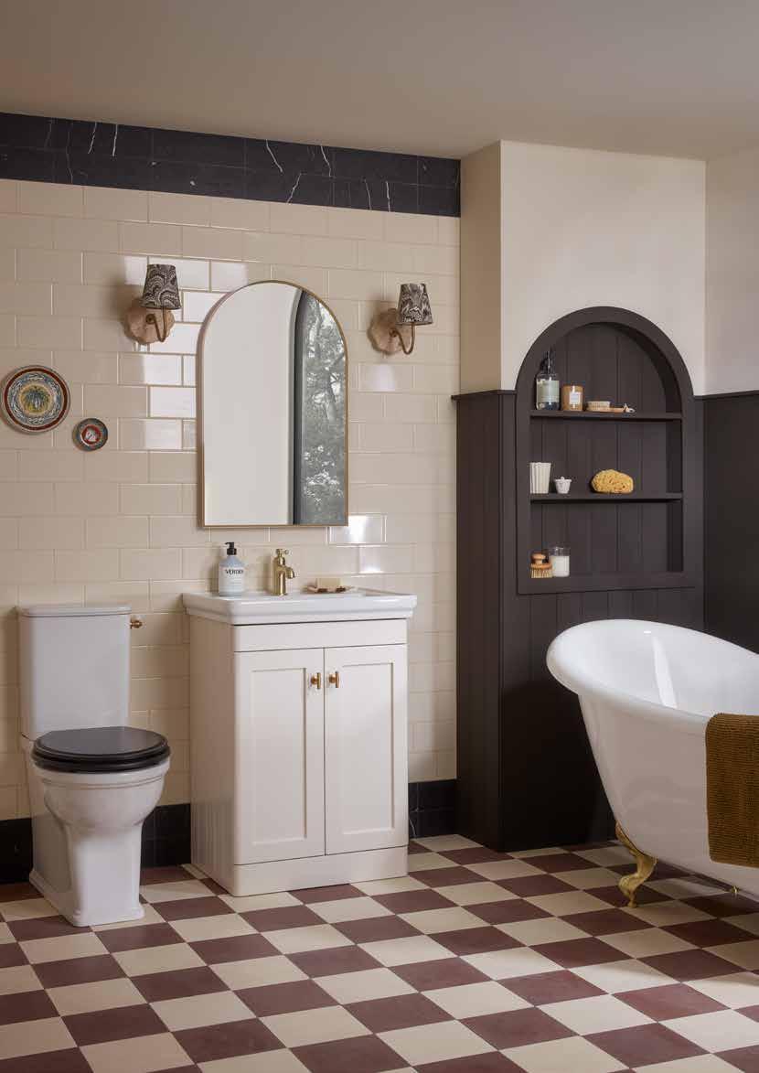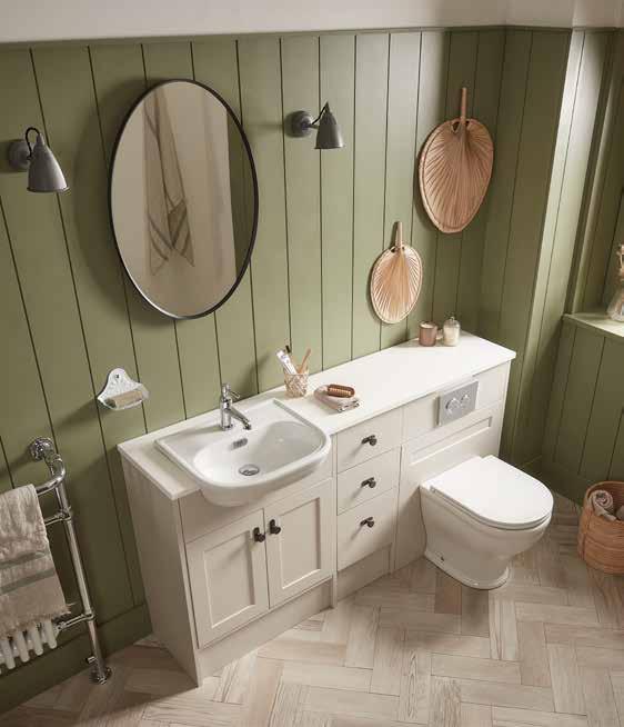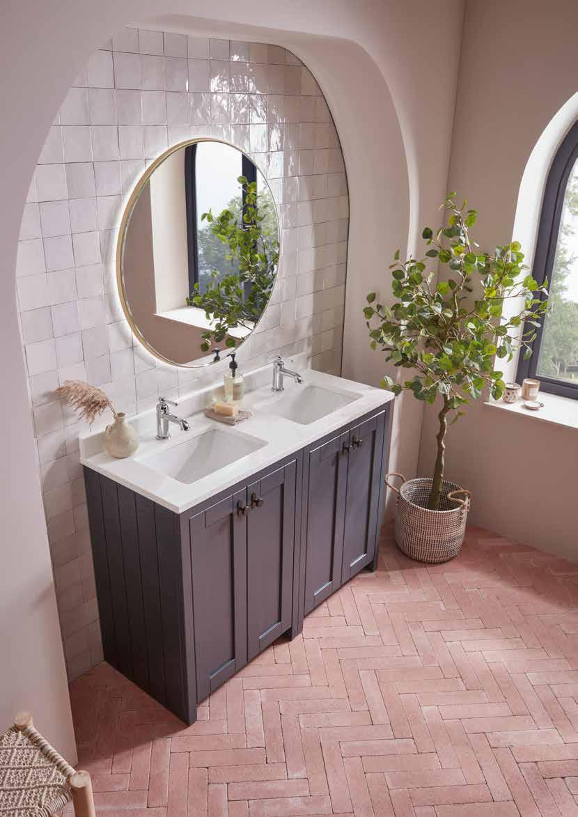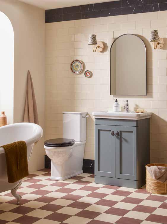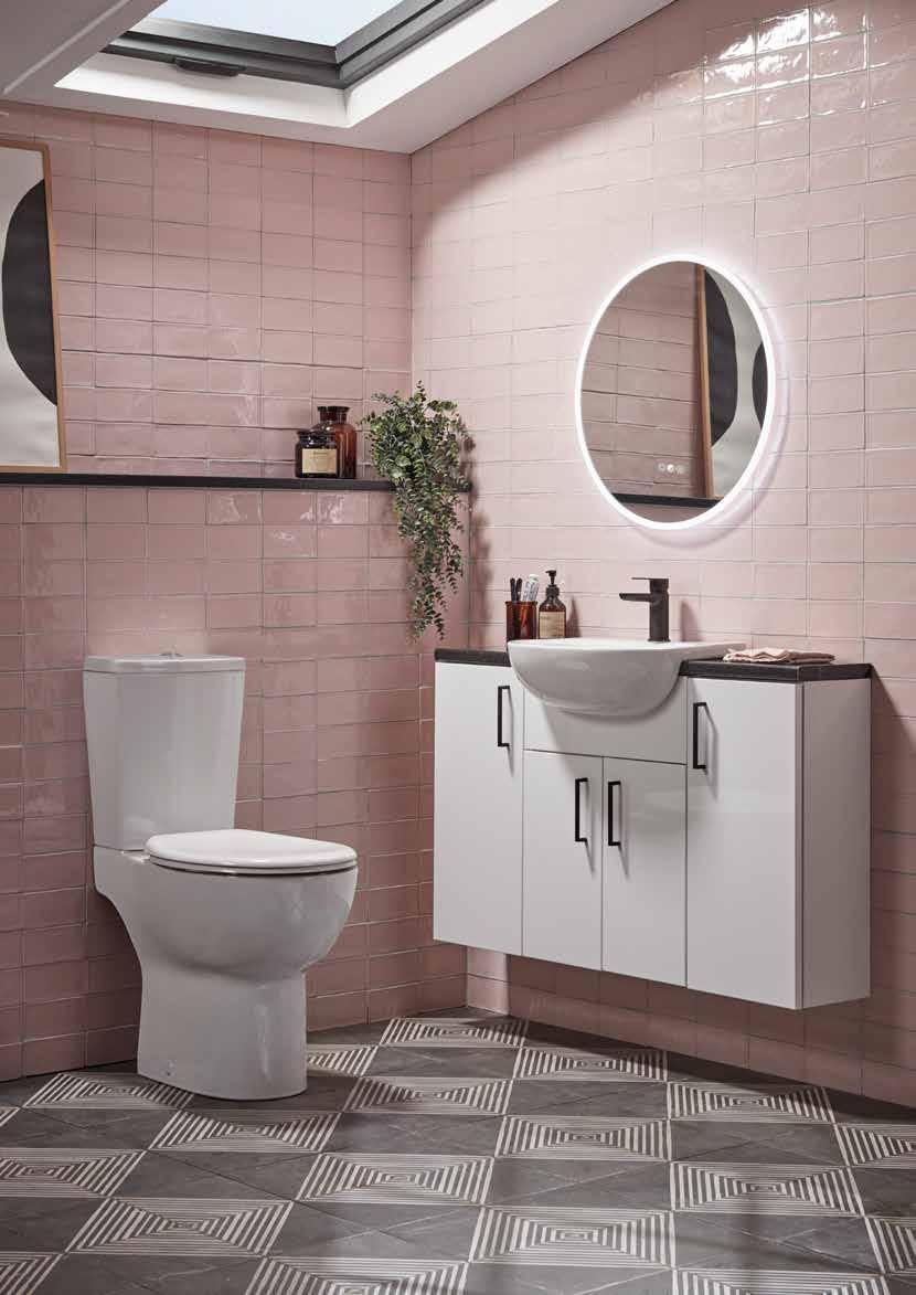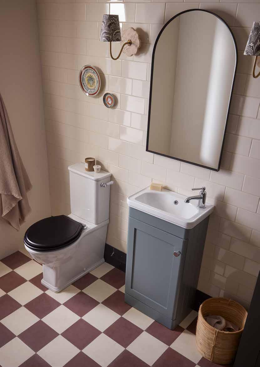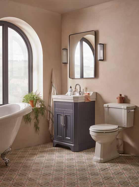 The elegant, timeless styling of the Vitoria range is the perfect bathroom solution for a period home. A stunning matt suede pink colourway has been added to the collection. See pages 72 - 77