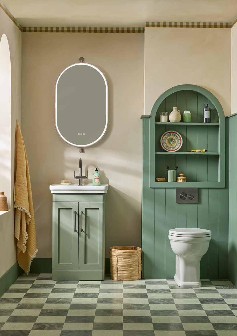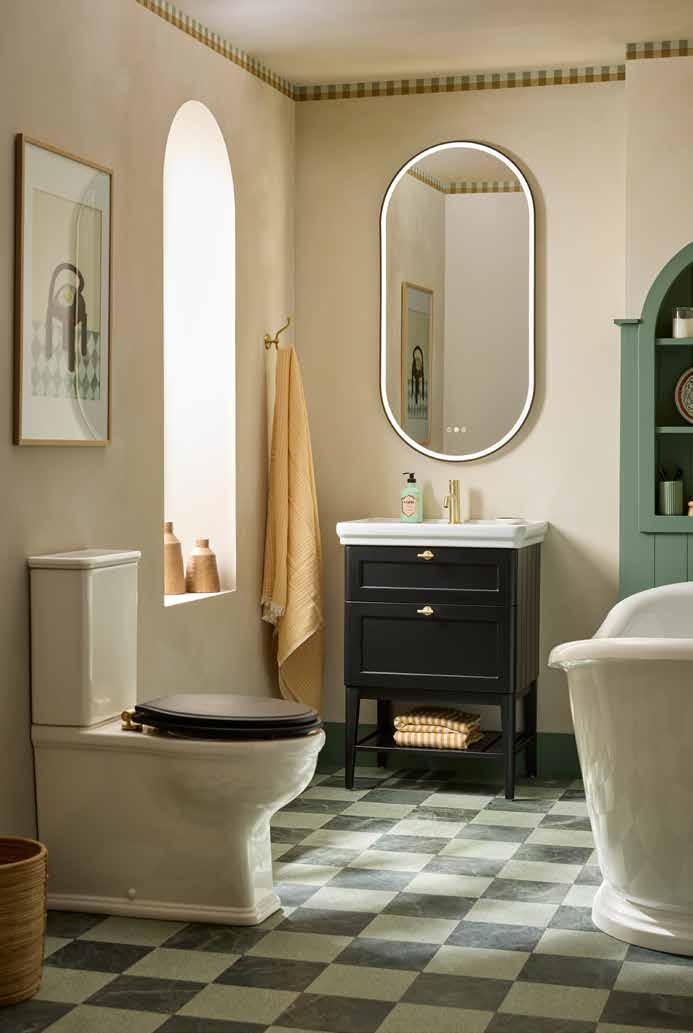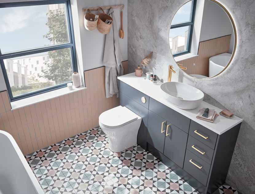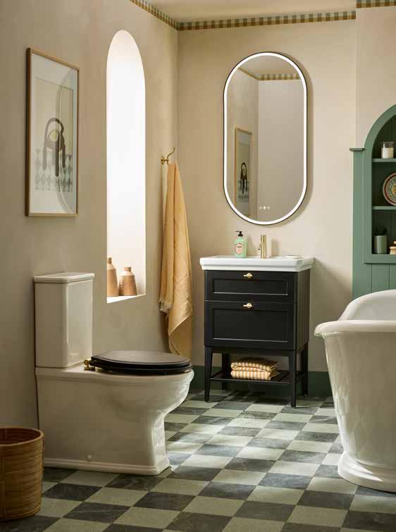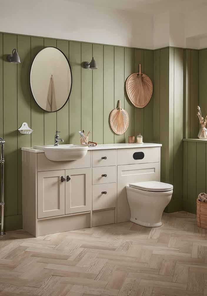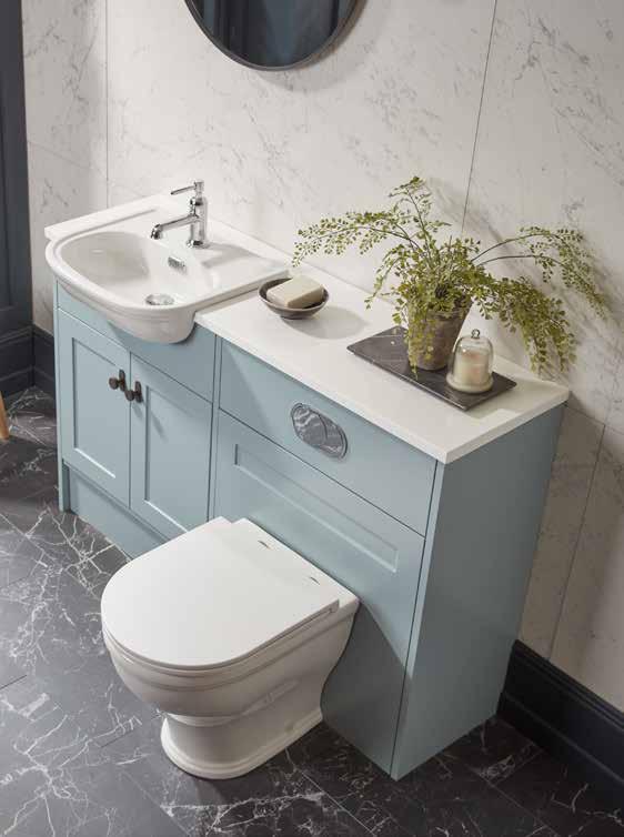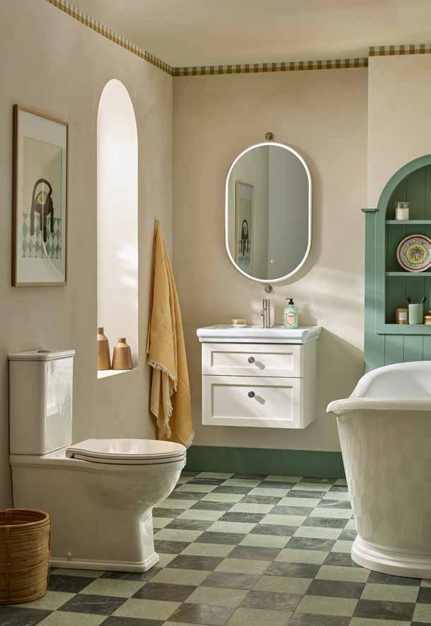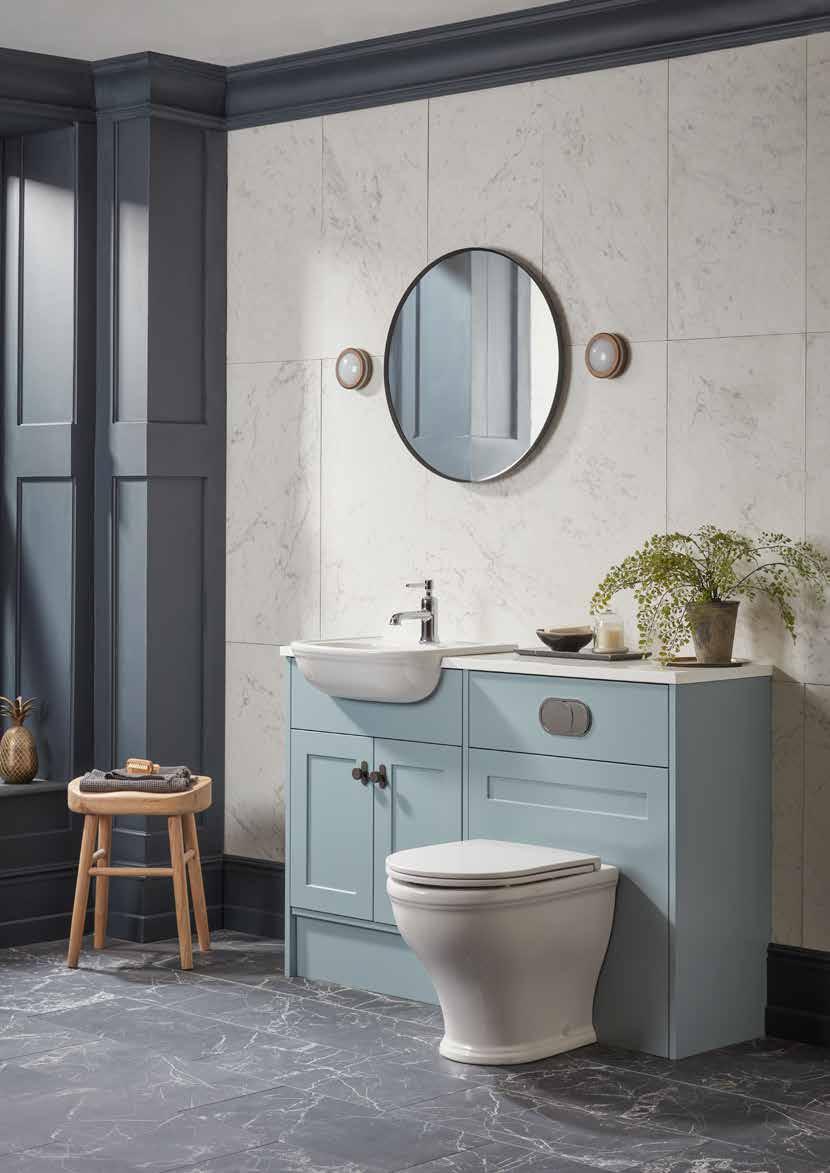 The elegant, timeless styling of the Vitoria range is the perfect bathroom solution for a period home. A stunning matt suede pink colourway has been added to the collection. See pages 72 - 77