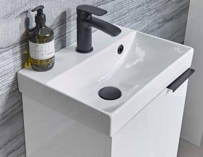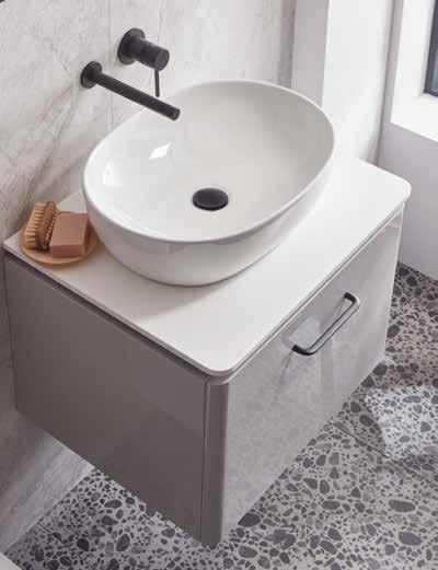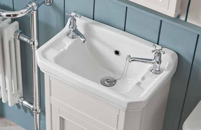 with soft, curved corners to give a modern edge. The versatility of this range allows for the wall mounted unit to be converted into a classic washstand.