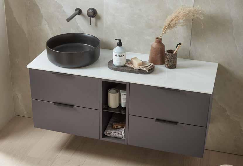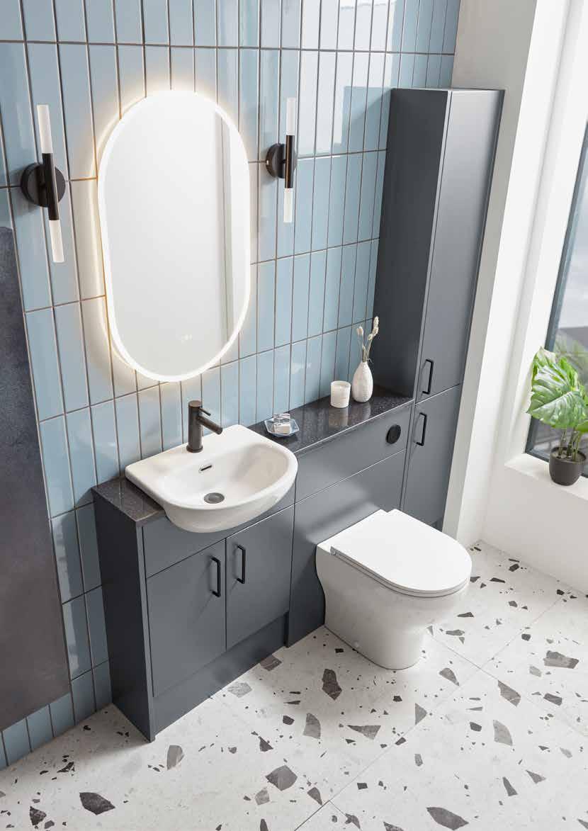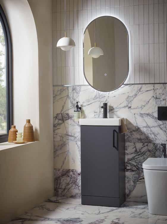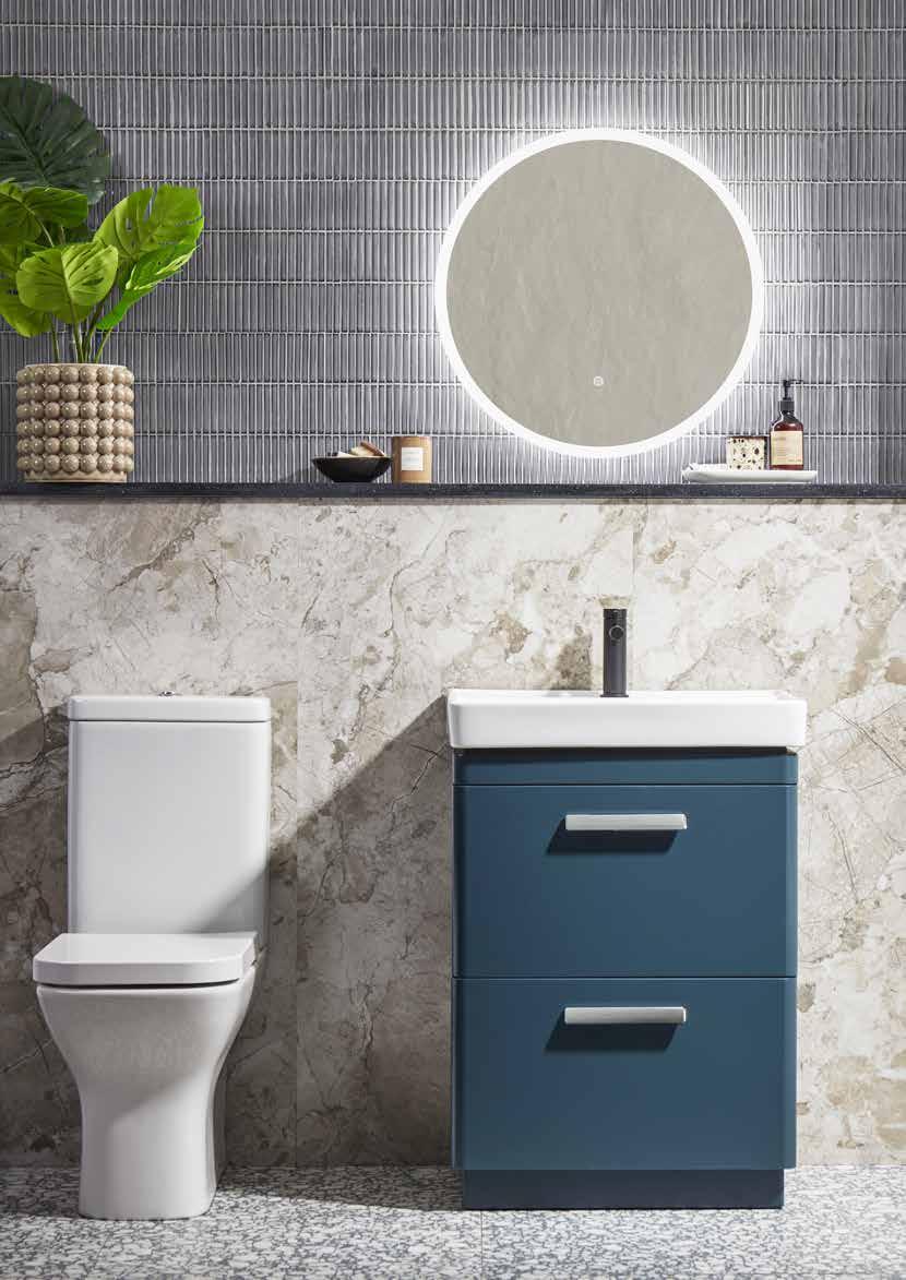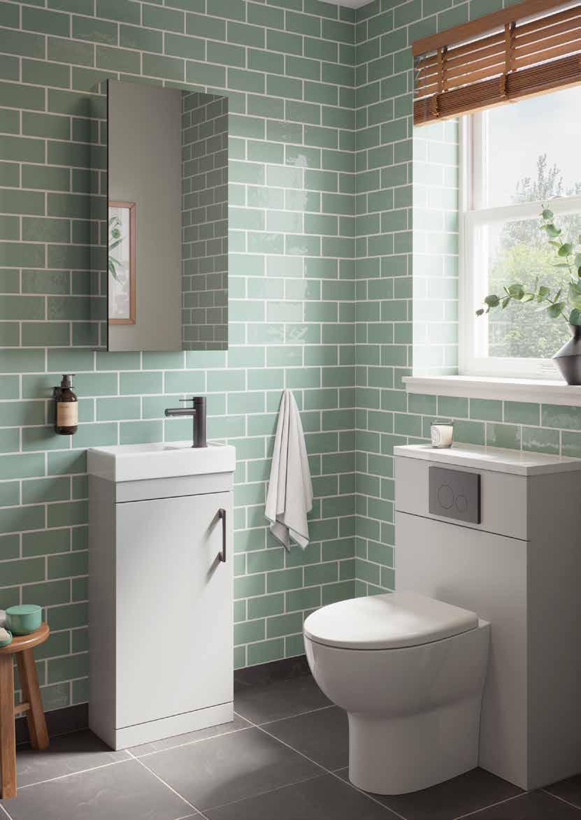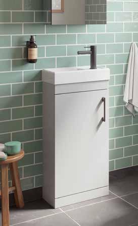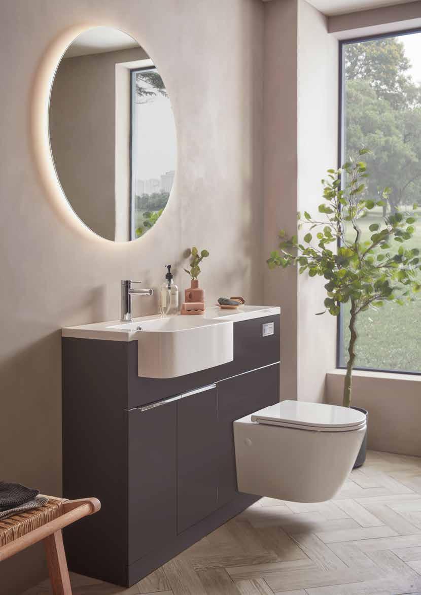 The furniture colours shown in this brochure are representative only and can be affected by a multitude of factors such as lighting and surrounding items. If you are unsure we would recommend obtaining a swatch from our website or your local retailer and testing in the intended bathroom area.