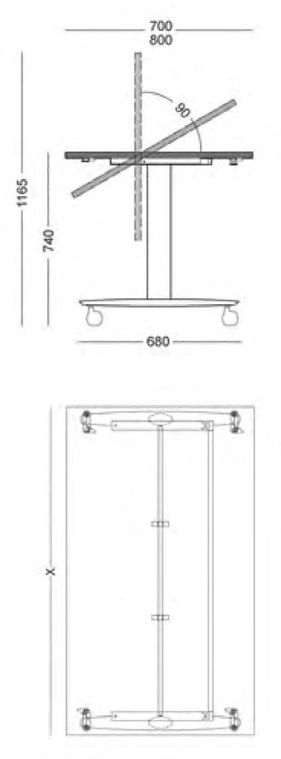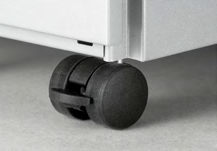 • Piètement blanc ou aluminium sur roulettes avec freins