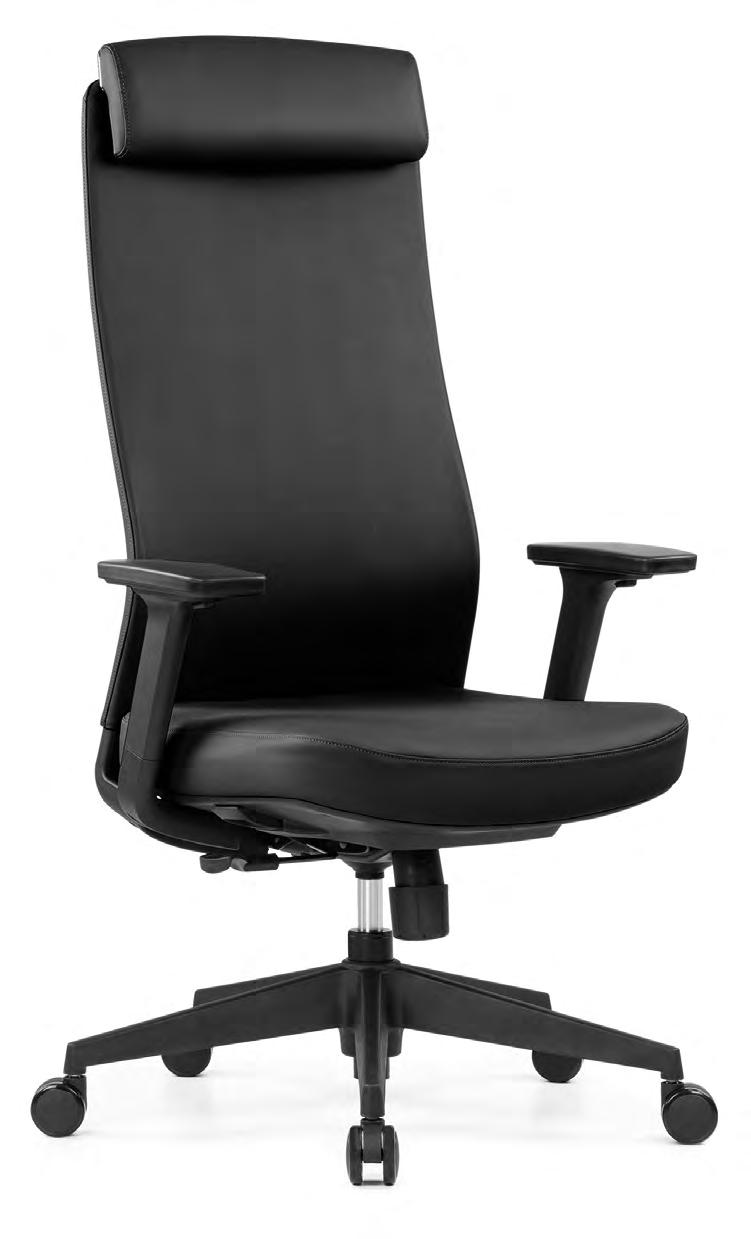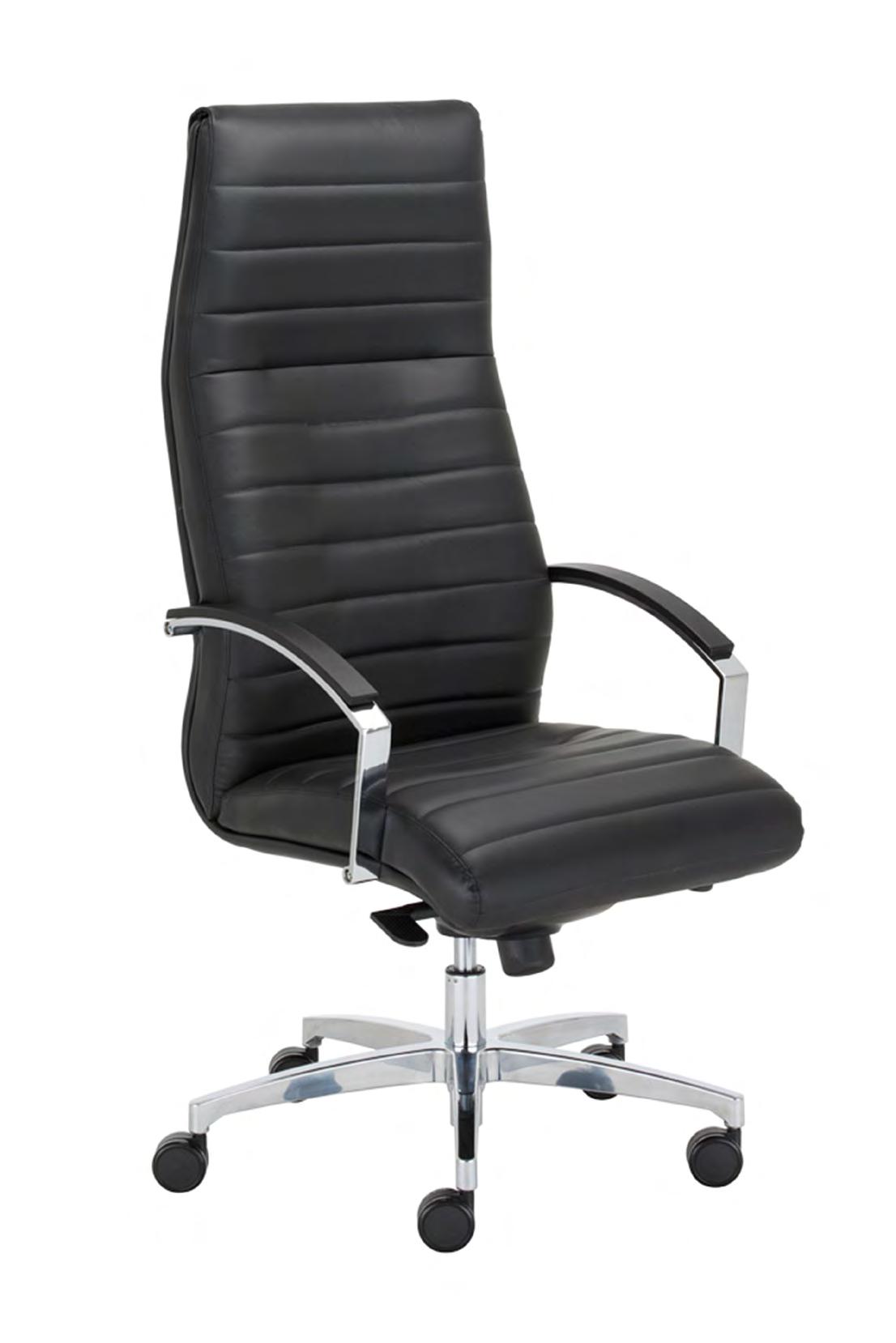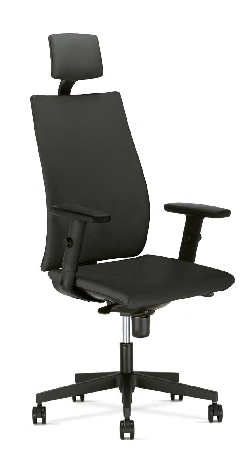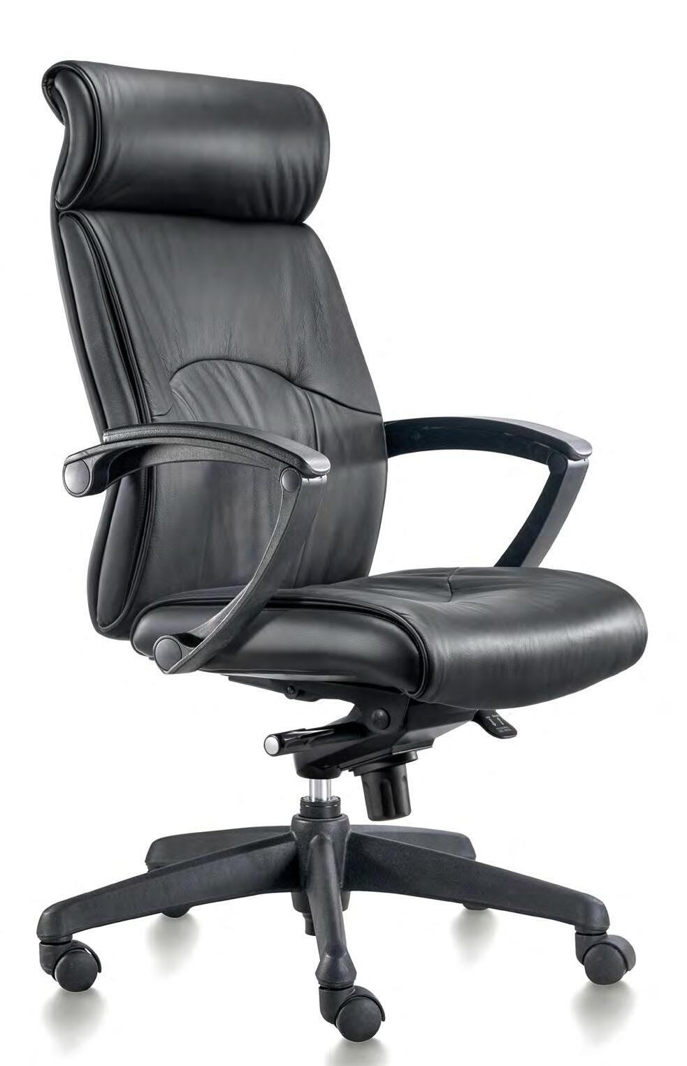• Fauteuil cuir haut dossier avec têtière et accoudoirs recouverts de polyuréthane