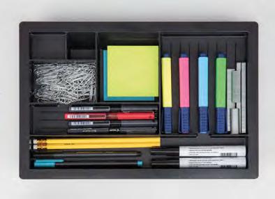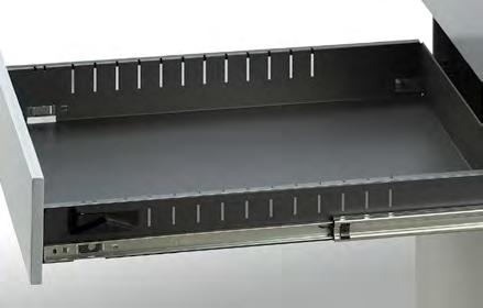 • Extraction des tiroirs pour papeterie, par système de roulement à billes : à 100%