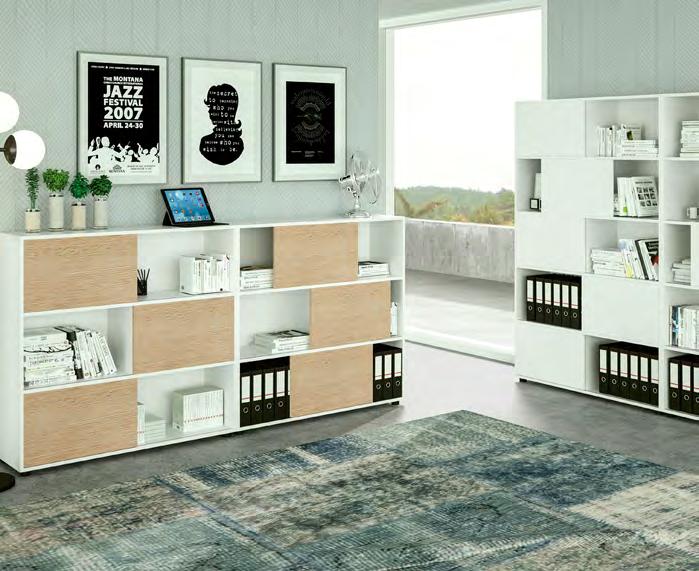 • Quatre étagères dont 3 réglables en hauteur dans la version haute et 1 fixe pouvant accueillir des classeurs jusqu'à 36 cm de hauteur.