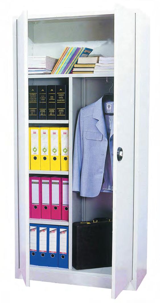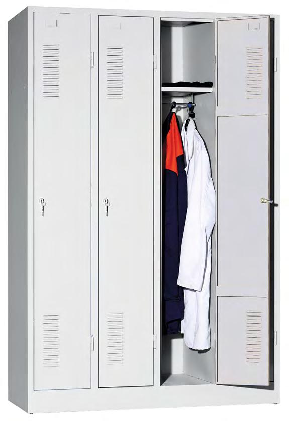 Armoire monobloc composée d’une grande et de 3 petites tablettes ainsi que d’une séparation verticale pour vestiaire