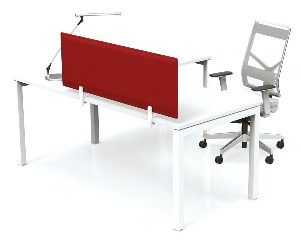 • Piètement métallique «L» à dégagement latéral avec montée de câbles dans chaque pied et séparation des flux.
