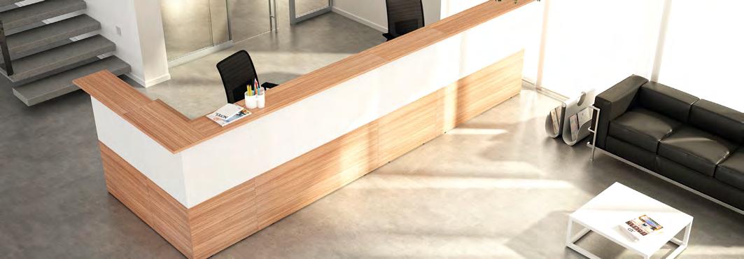 • Robuste et élégante la banque d'accueil Linea est proposée en 3 finitions : blanc et merisier, blanc et frêne noir ou toute blanche