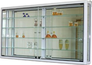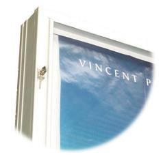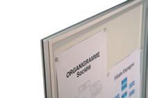 > Vitrine intérieure avec cadre en aluminium anodisé, vitrage méthacrylate.