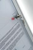 > Charnière amovible, facilitant la pose de la vitrine et la maintenance.