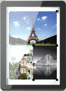 > Cadre en alu anodisé de faible épaisseur (21mm hors-tout, 17mm utile).