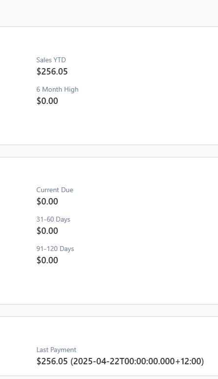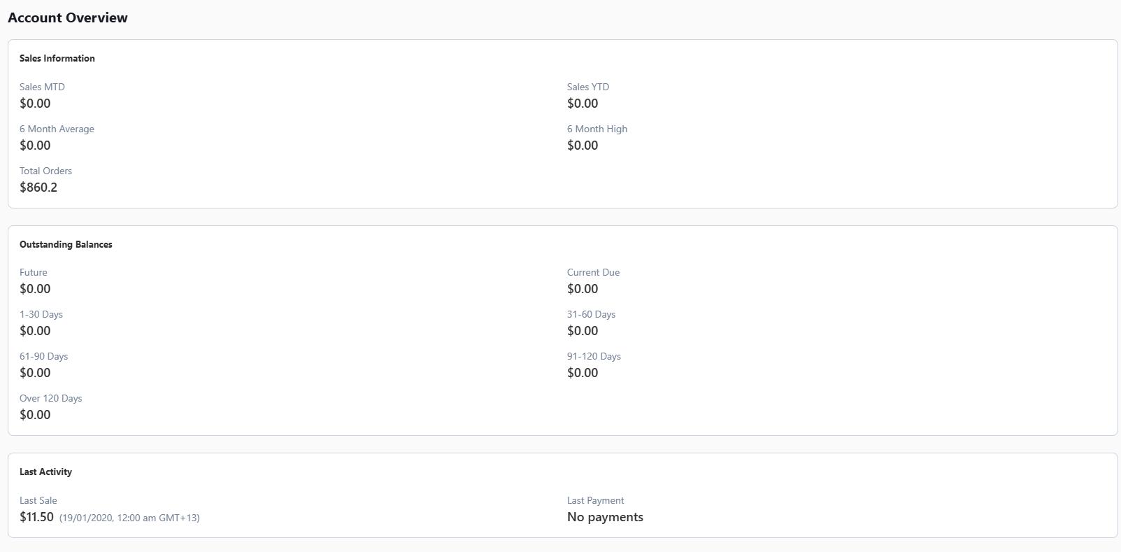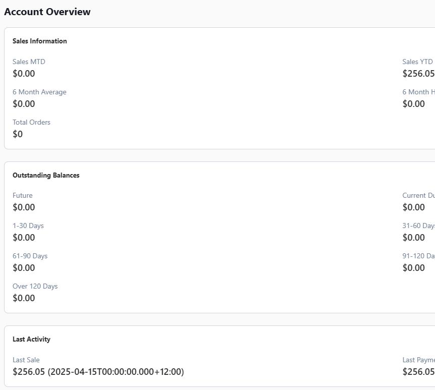 2. You can then see your sales MTD & YTD any outstanding balances and your last sale & payment.
