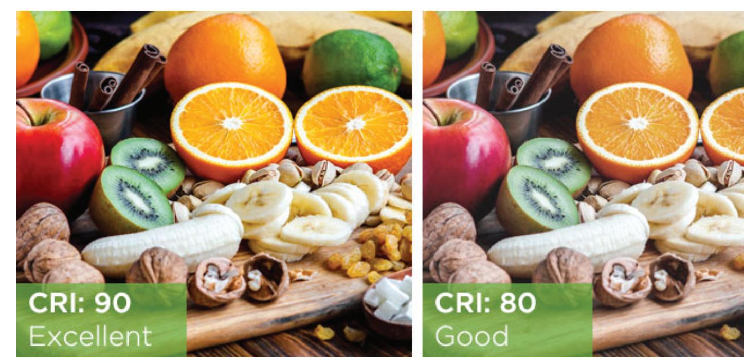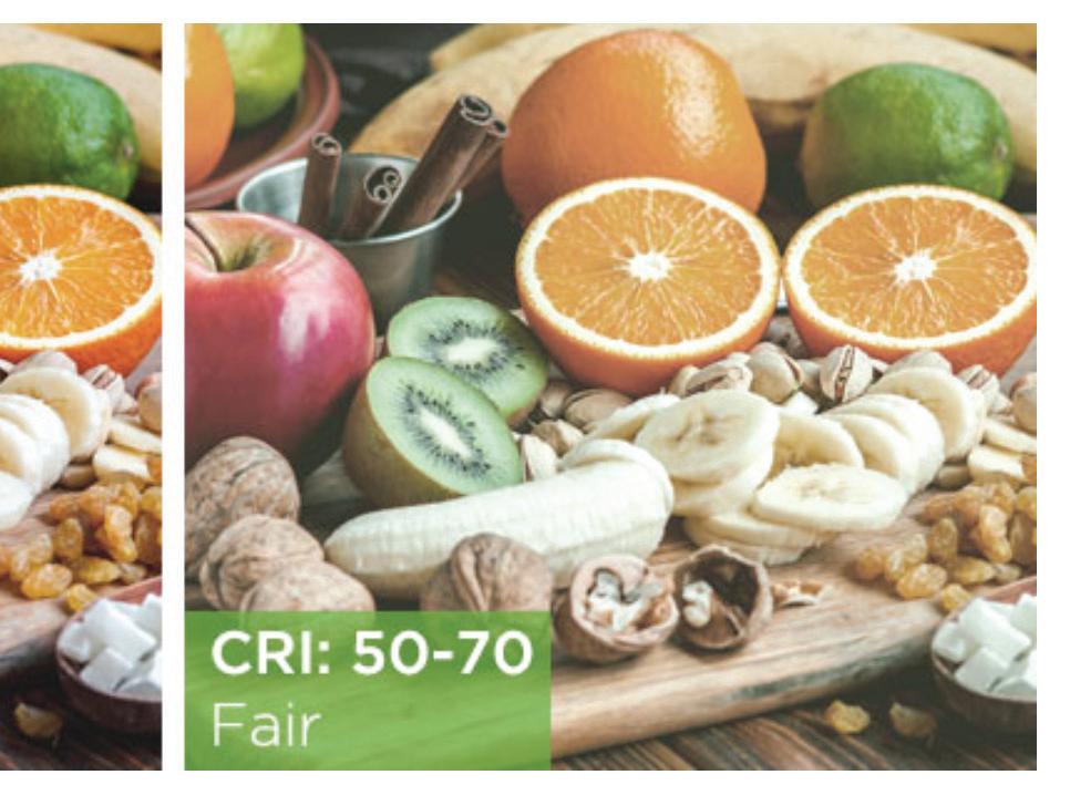 The CRI value of a light source describes how accurately a light source illuminates colors of an object. It tells us about the color appearance of objects under the light source (the light source “renders” the colors of an object)