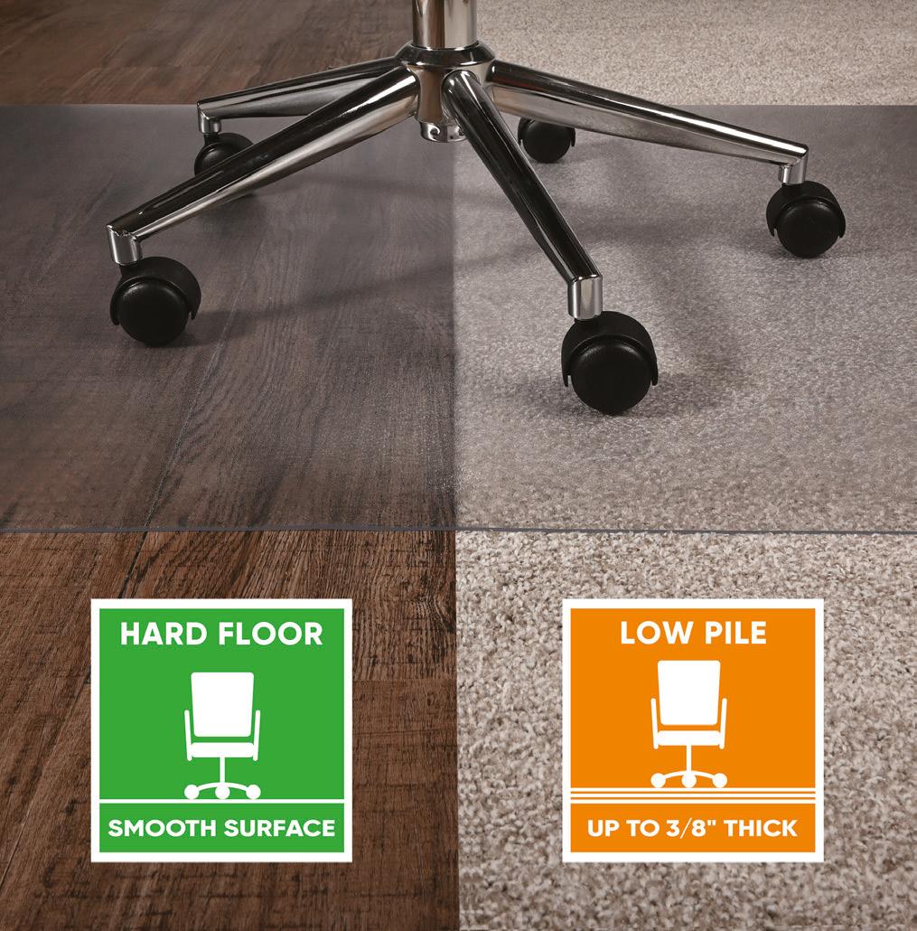One mat. So many surfaces. Innovative SuperGrip smooth bo om surface chair mat replaces sharp studs and sticky adhesives to hold mat rmly in place on carpet or hard oors. Gently protects multiple ooring types from normal wear and tear caused by chair casters.
