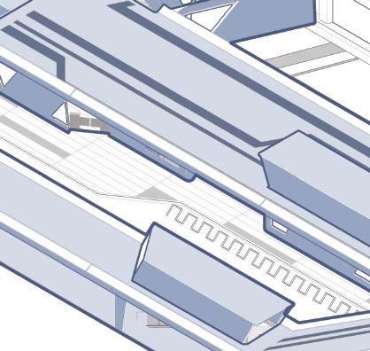 he a erage ur an tree re uires 782 gallons of ater per tree per ear and thousands of gallons of storm ater accumulate on the free a deck during rain e ents his pro ect proposes a multi tiered regenerati e catchment and irrigation s stem that latches to the e isting free a infrastructure he rain ater on the ridge deck is collected gra it and transported to the conca e green space at the ottom of the ridge for irrigation of trees