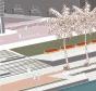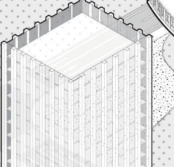 he a erage ur an tree re uires 782 gallons of ater per tree per ear and thousands of gallons of storm ater accumulate on the free a deck during rain e ents his pro ect proposes a multi tiered regenerati e catchment and irrigation s stem that latches to the e isting free a infrastructure he rain ater on the ridge deck is collected gra it and transported to the conca e green space at the ottom of the ridge for irrigation of trees