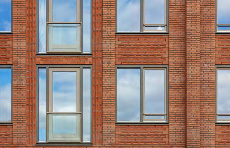De architectuur van het Boegkwartier - De Zwarte Hond architecten - is van een opvallende kwaliteit. ‘Je leest aan de gevel niet af dat het hier hoofdzakelijk om sociale huurwoningen gaat,’ vertelt Jeroen Schrage, projectleider bij Rottinghuis’ Aannemingsbedrijf. ‘Het bijzondere gevelmetselwerk, de kozijnen met de Franse balkons... het is bijna chique. De zinken daken maken het echt af.’