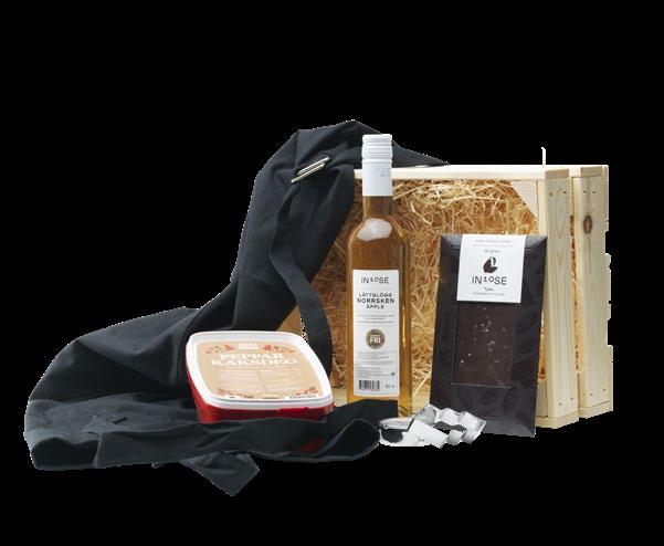 Sett på litt julemusikk, hell litt gløgg i koppen og lag dine egne pepperkaker med dette nydelige julesettet. Alt du trenger levert i en autentisk treboks. En frisk eplegløgg som kan serveres varm eller kald, pepperkakedeig, pepperkakefor mer (assortert utvalg) og en deilig sjokoladekake med mørk sjokolade og sjøsalt på toppen samt et forkle.