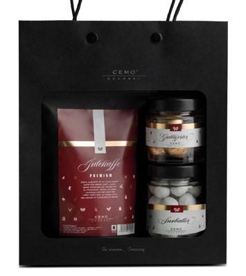 Kähler Omaggio skål og dansk luksussjokolade 110 g. pakket i sort stoffpose.Hasselnøtt m/lys sjokolade og kanel 100 g. Lakriskuler med sjokolade og lakrispulver 100 g. Brente mandler 100 g. Størrelse: Ø30cm
