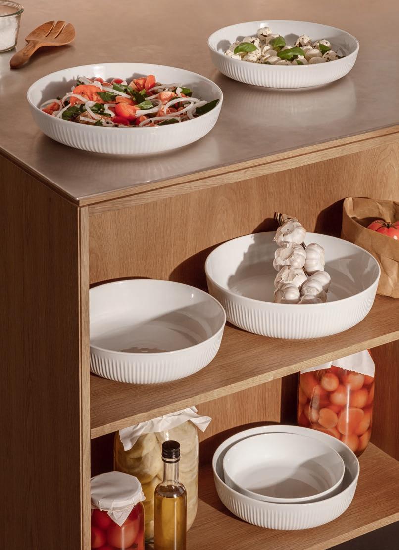 Skab en elegant borddækning med stel, bestik og glas i den klassiske Eva Trio Legio Nova serie. Fælles for alle Legio Nova delene er, at de er fremstillet med fokus på det enkle og tidløse design, og nøje udvalgte materialer, der er hårdføre nok til at klare hverdagsbrug. Porcelænets karakteristiske riller skaber en smuk indramning og fremhæver selve anretningen.