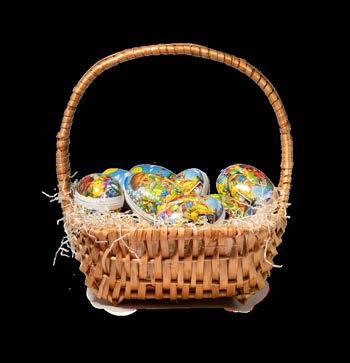 Alkoholfri bubblig lemonad, La Pralines kakaopudrade tryfflar med smak av salt karamell, påskskum, kolamix i smakerna chokladmint, choklad och grädd, nougatfyllda chokladägg i klassisk äggkartong. Art. Nr 120070