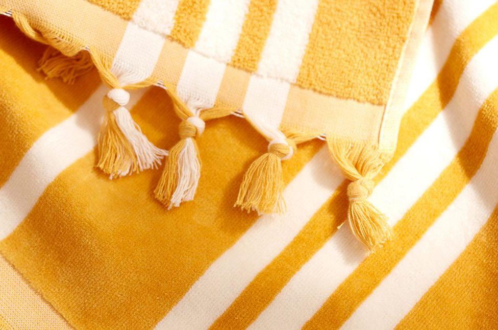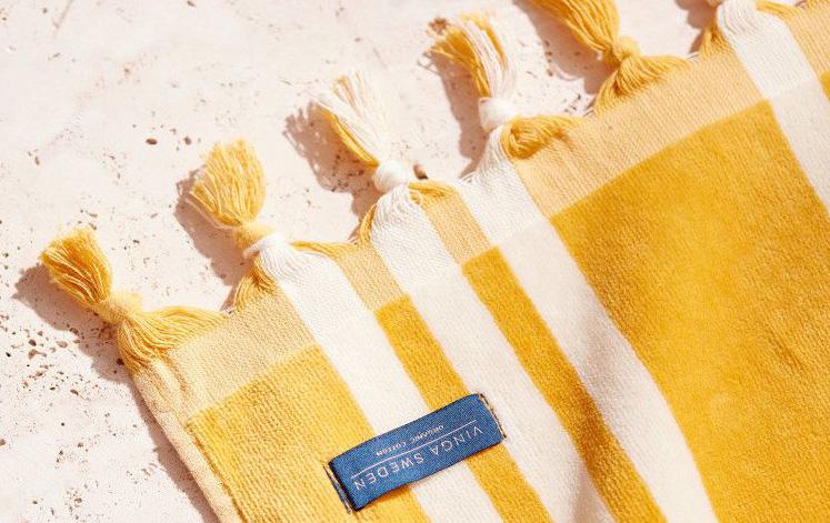 Handduken är perfekt att ta med sig ner till stranden eller poolen och gör din utevistelse lite mer speciell. Finns också i blått.