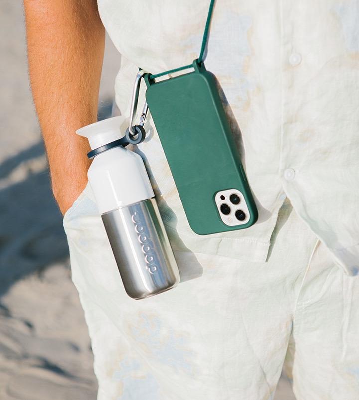 The Dopper Carrier works with all Dopper bottles, from the 350 ml Dopper Steel to the 1 L Dopper Insulated, ensuring you never forget your bottle again.