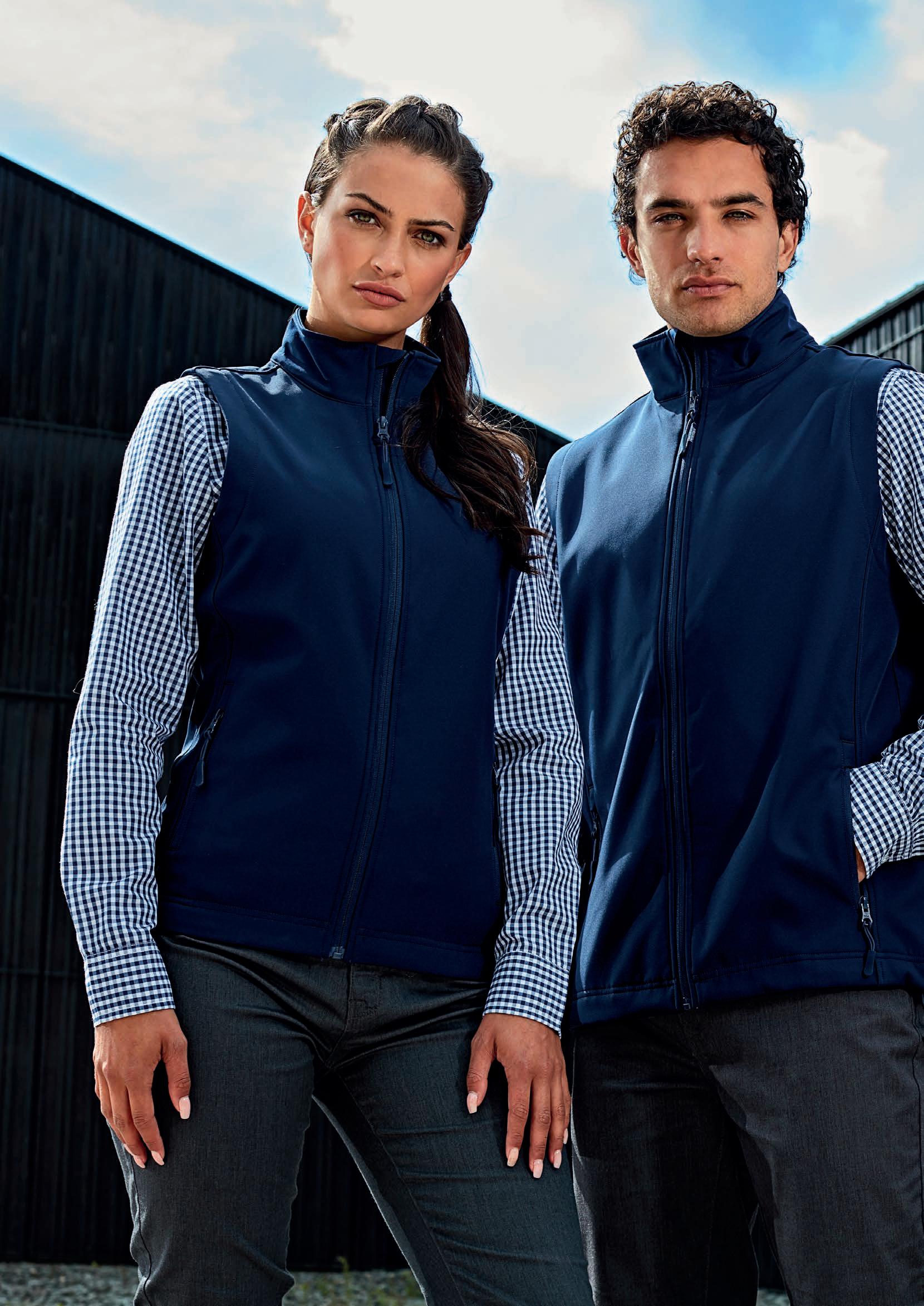 Softshellvest som bærer Premier’s Windchecker®varemerke for vind- og vannmotstand gjennom stoffet.
