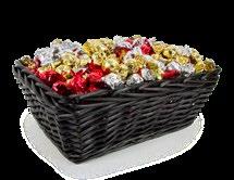 Kurver i 4 størrelser fylt med merkevaregodt eller pralinkuler. Kurvene pakkes inn i cellofan og påsettes sløyfe som standard. Kort med eget trykk og hilsen kan legges i kurven.