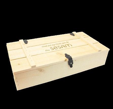 Rustikke treesker i 3 størrelser hvor logo brennes direkte inn i esken. Fylles med merkevaregodt eller pralinkuler. På 800g esken brennes logo på lokket mens foran på de andre eskene.