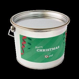 Spannet leveres med 3 ulike innhold; pralinkuler, merkevaregodt og skumnisser. Ditt eget budskap trykkes på en etikett som festes på spannet. Et åpningsverktøy følger med hvert spann. Verktøyet festes på lokket.