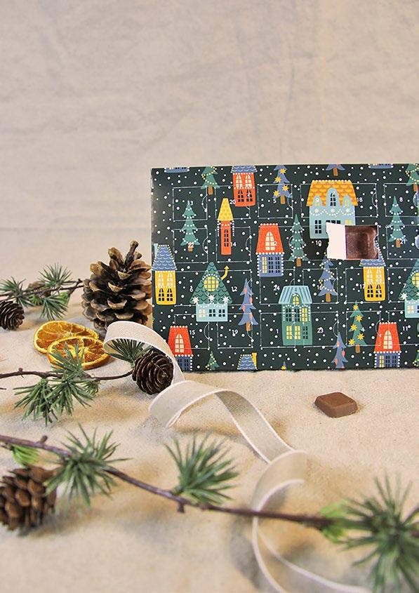 Adventskalender som fås i helt eget design. Inneholder min. 35% kakao.