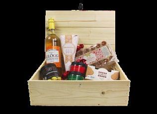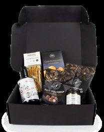 Innhold: Vanini olivenolje 250 ml, Crumbles 75g, Narr lakrisstubbe 120g, 2 stk serranoskinke 70g, salamichips hvitløk 80g, salamichips chorizo 80g, salamisticks trøffel 100g og nøttemix 60g. Logo brennes direkte inn i treesken eller trykkes på et kort som legges i esken.