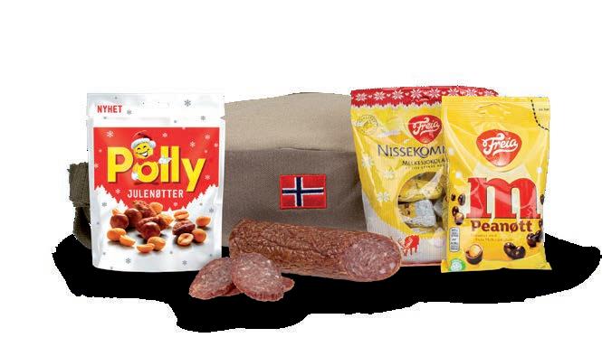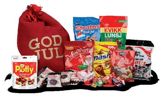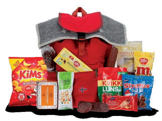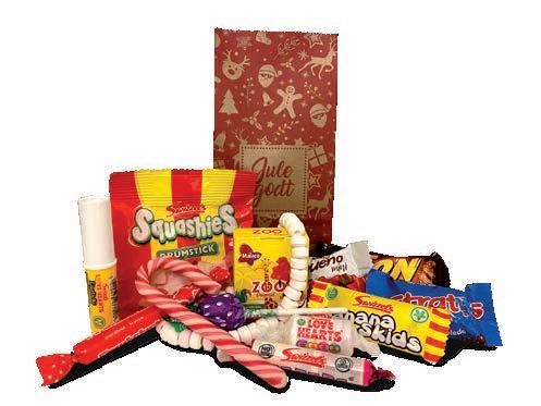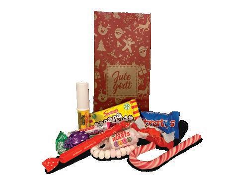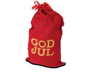 Innhold: Stratos Julefigurer 140g, Nidar Julemarsipan 130g, Cloetta Juleskum 100g, Polly Julenøtter 100g, Julebrus 0,5l, Nissekompiser 120g, Kims Juleglede stjernemix salt 150g, Sitteunderlag ull, Rød Olasekk kjøl.