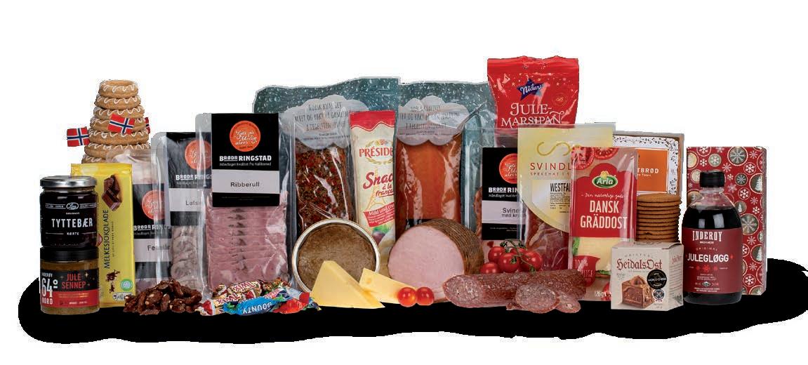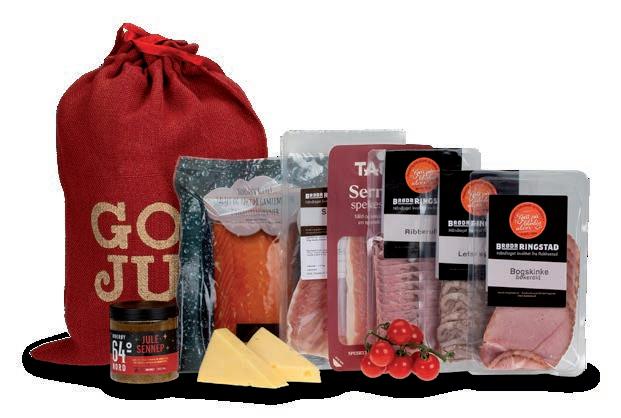 Innhold: Lefsesylte skivet 100g, Julepostei 200g, Røros Juleost 90g, Julesennep 200g , Rødvinspølse 200g, Norsk spekeskinke skivet 75g, Julemiks innpakkede biter 100g, Røkt laks skivet 100g, Kims Juleglede 150g, Kyllingpålegg m/urter skivet 100g, Elg spekepølse 200g, Pepperkaker 150g, Ribberull 100g, Ringstad Fenalår 100g, Holmens brente mandler 100g, Nidar julemarsipan 130g, Heidal Formost 250g, Juleskinke bøkerøkt skivet 100g, Gravet laks skivet 100g, Stratos Julefigurer 140g, Potetflatbrød 210g.