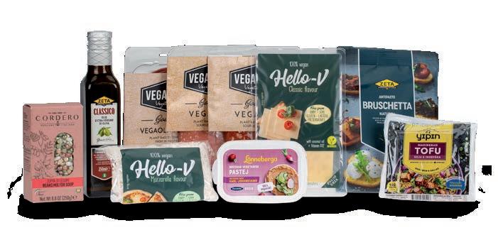 Innhold: Olivenolje Ex Verg Classiso 0,25l, Bruschetta naturell 175g, Vegan Deli Vegalami 90g, Vegan Deli Vegaola 90g, Hello-V skivet gulost 140g, Vegetarpostei 200g, Vegan Deli Vegarizo 90g, Hello-V revet mozzarella 200g, Tofu soya & infefær 230g, Bønnesuppe 250g,